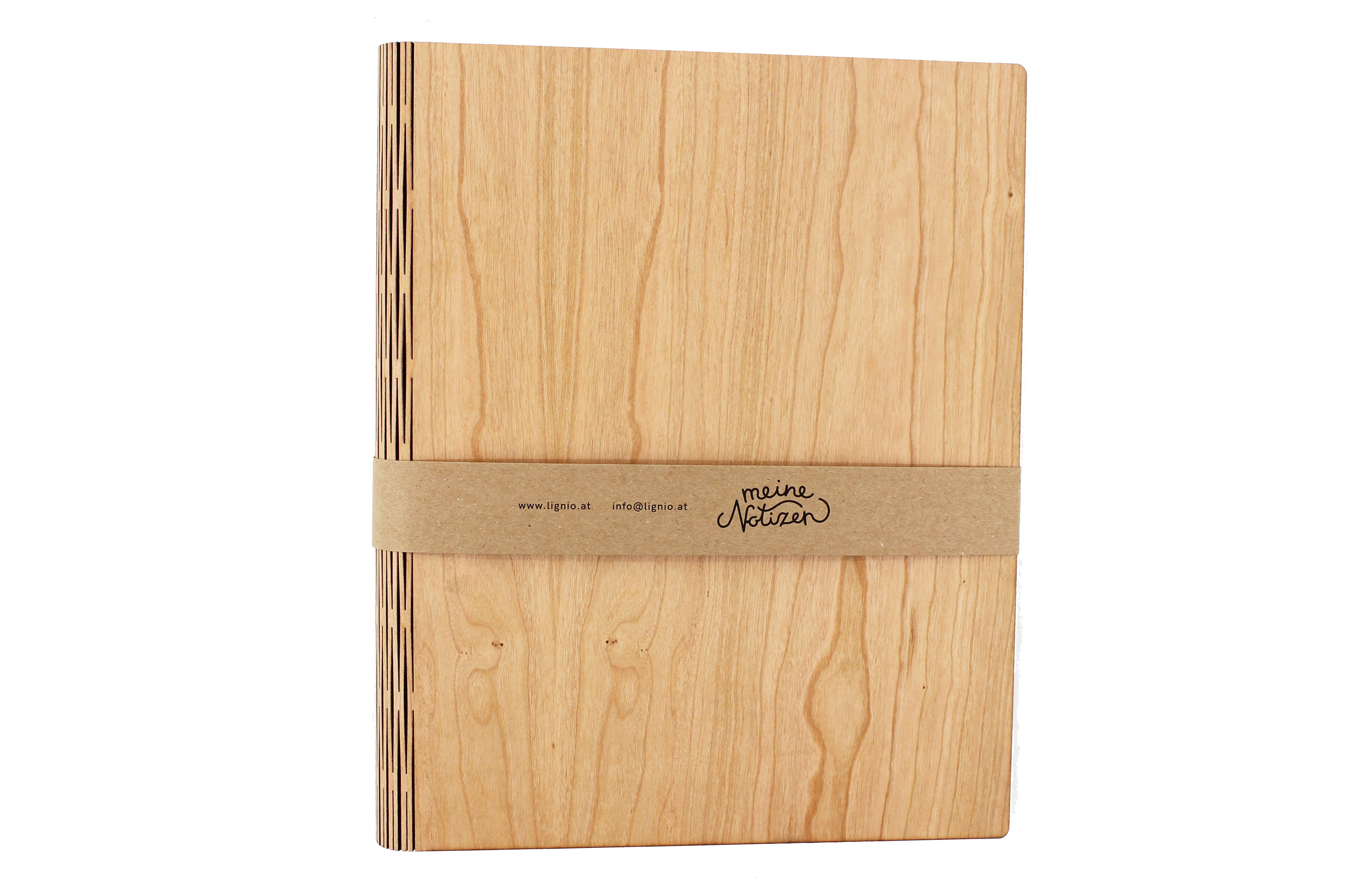 Notizbuch aus Kirschholzfunier mit besonderen Lasercut an den Umschlag und auch an den Buchrücken was innen eine extra Befestigung hat. Das Holz ist mit natürlichem Öl veredelt. Die wechselbare füllung ist 80 g/m² FSC-zertifizierten Recyclingpapier in hochweiß. Echte Handarbeit. Maße: 33x27,2x3 cm
