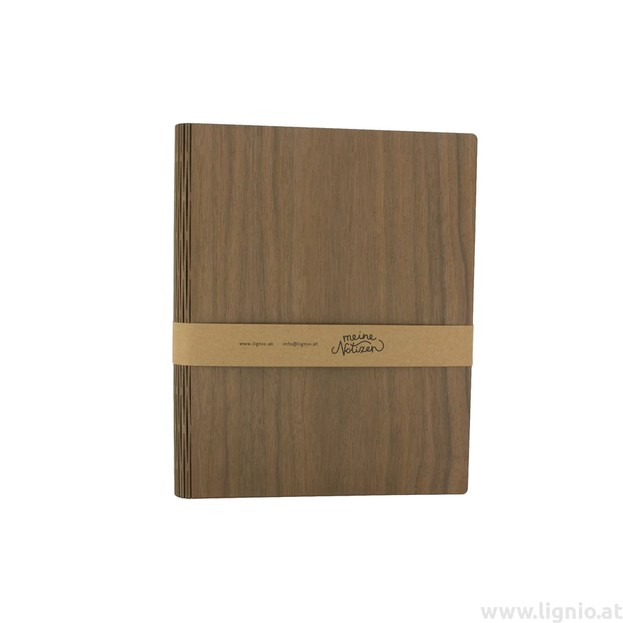 Notizbuch aus Nussholzfunier mit besonderen Lasercut an den Umschlag und auch an den Buchrücken was innen eine extra Befestigung hat. Das Holz ist mit natürlichem Öl veredelt. Die wechselbare füllung ist 80 g/m² FSC-zertifizierten Recyclingpapier in hochweiß. Echte Handarbeit. Maße: 33x27,2x3 cm