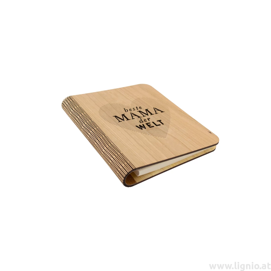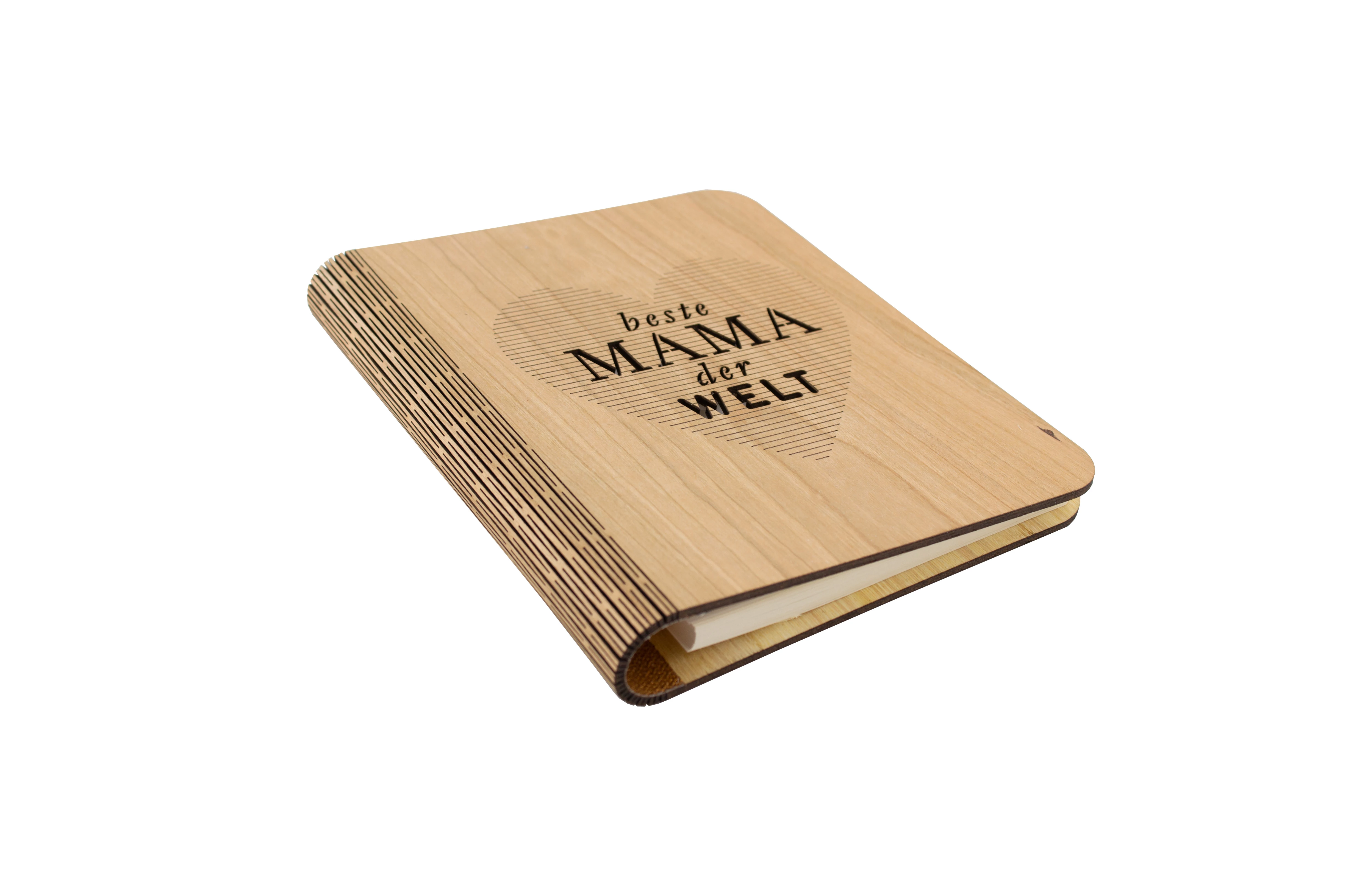 Notizbuch aus Kirschholzfunier mit besonderen Lasercut an den Umschlag und auch an den Buchrücken was innen eine extra Befestigung hat. Das Holz ist mit natürlichem Öl veredelt. Die wechselbare füllung ist 80 g/m² FSC-zertifizierten Recyclingpapier in hochweiß. Echte Handarbeit. Maße: 22x17,7x3 cm, 3 Stück/Packung