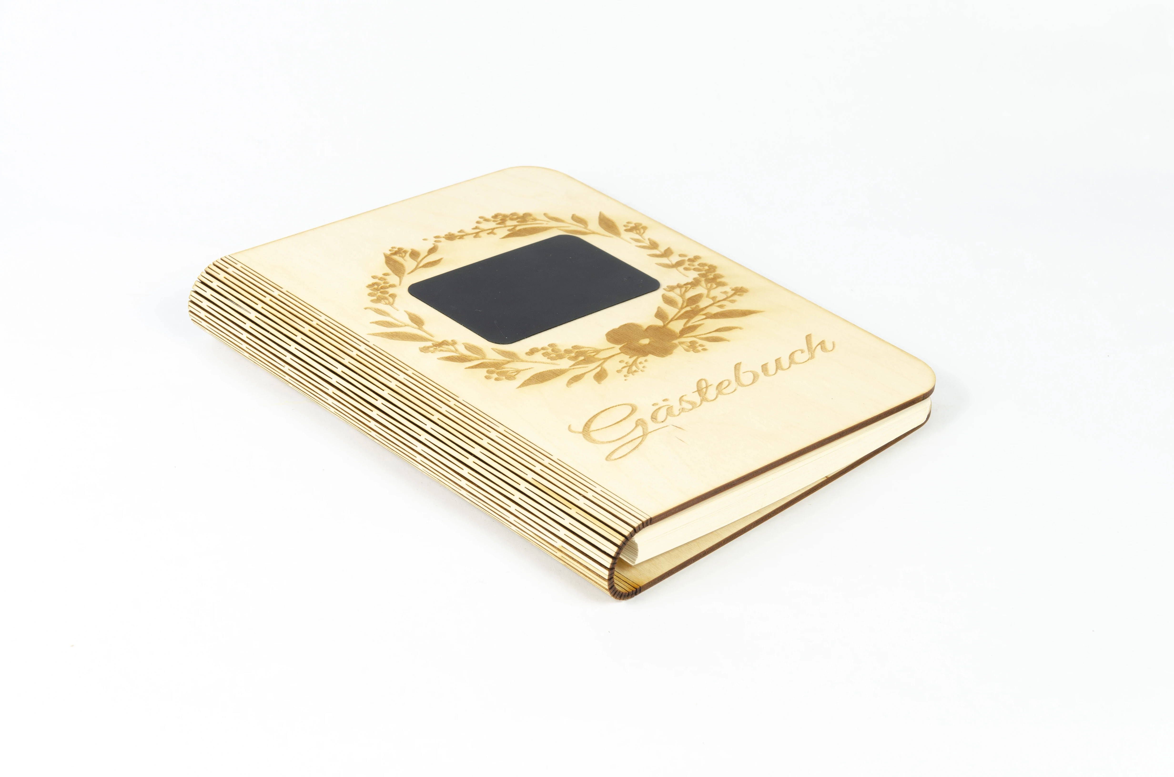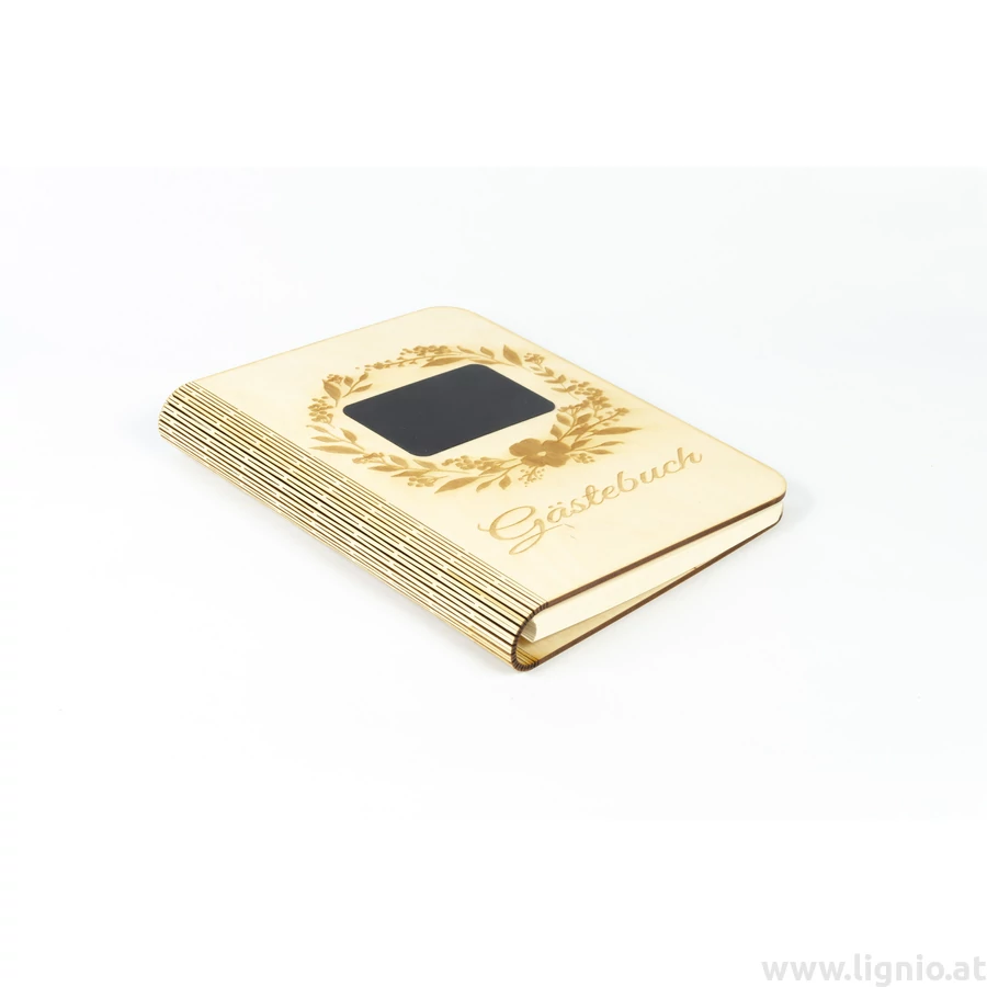 Notizbuch aus Birkenholzfunier mit besonderen Lasercut an den Umschlag und auch an den Buchrücken was innen eine extra Befestigung hat. Das Holz ist mit natürlichem Öl veredelt. Die wechselbare füllung ist 80 g/m² FSC-zertifizierten Recyclingpapier in hochweiß. Echte Handarbeit. Maße: 22x17,7x3 cm, 3 Stück/Packung