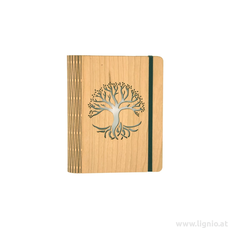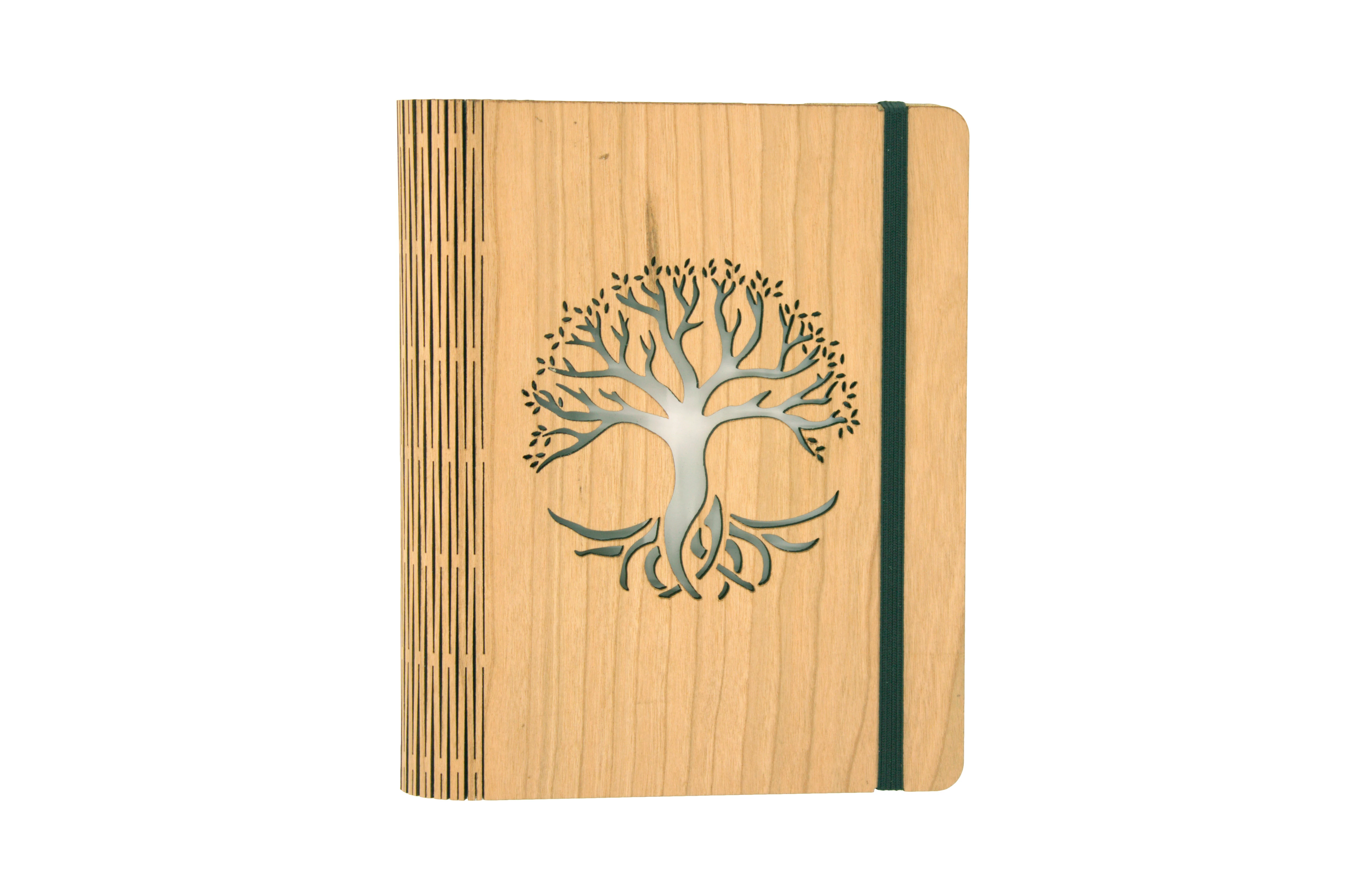 Notizbuch aus Kirschholzfunier mit besonderen Lasercut an den Umschlag und auch an den Buchrücken was innen eine extra Befestigung hat. Das Holz ist mit natürlichem Öl veredelt. Die wechselbare füllung ist 80 g/m² FSC-zertifizierten Recyclingpapier in hochweiß. Echte Handarbeit. Maße: 16,2x13,5x3 cm, 3 Stück/Packun