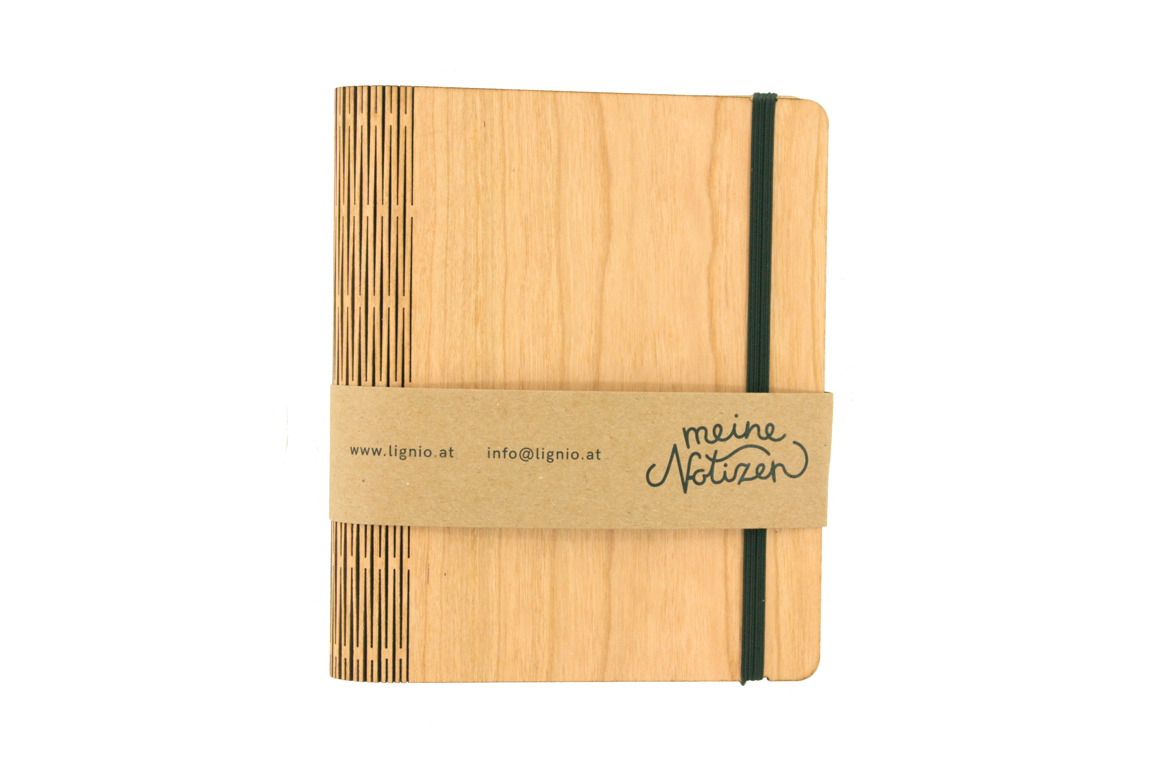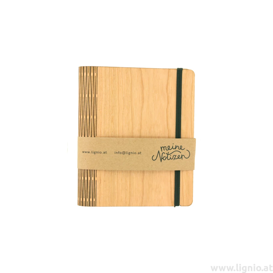 Notizbuch aus Kirschholzfunier mit besonderen Lasercut an den Umschlag und auch an den Buchrücken was innen eine extra Befestigung hat. Das Holz ist mit natürlichem Öl veredelt. Die wechselbare füllung ist 80 g/m² FSC-zertifizierten Recyclingpapier in hochweiß. Echte Handarbeit. Maße: 16,2x13,5x3 cm, 3 Stück/Packun