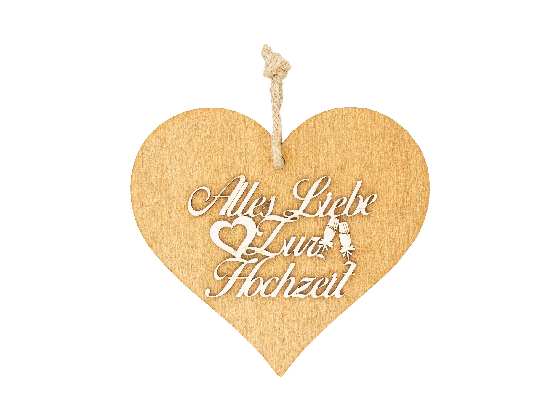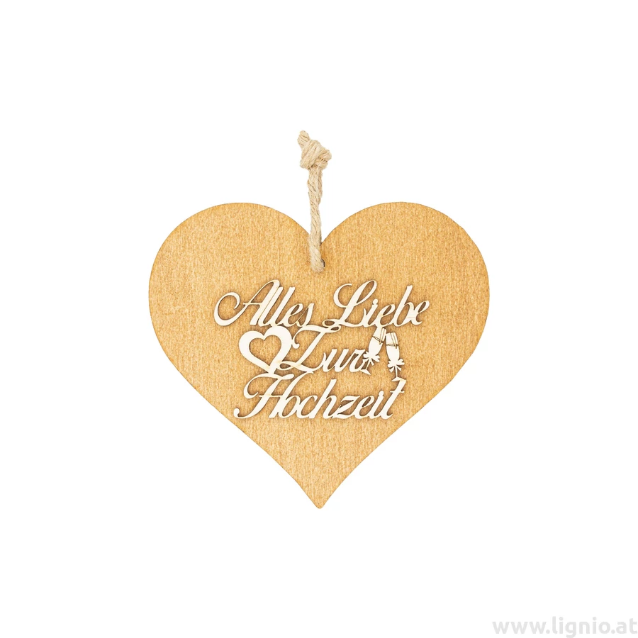 Braunes 3D Holzherz "Alles Liebe zur Hochzeit"