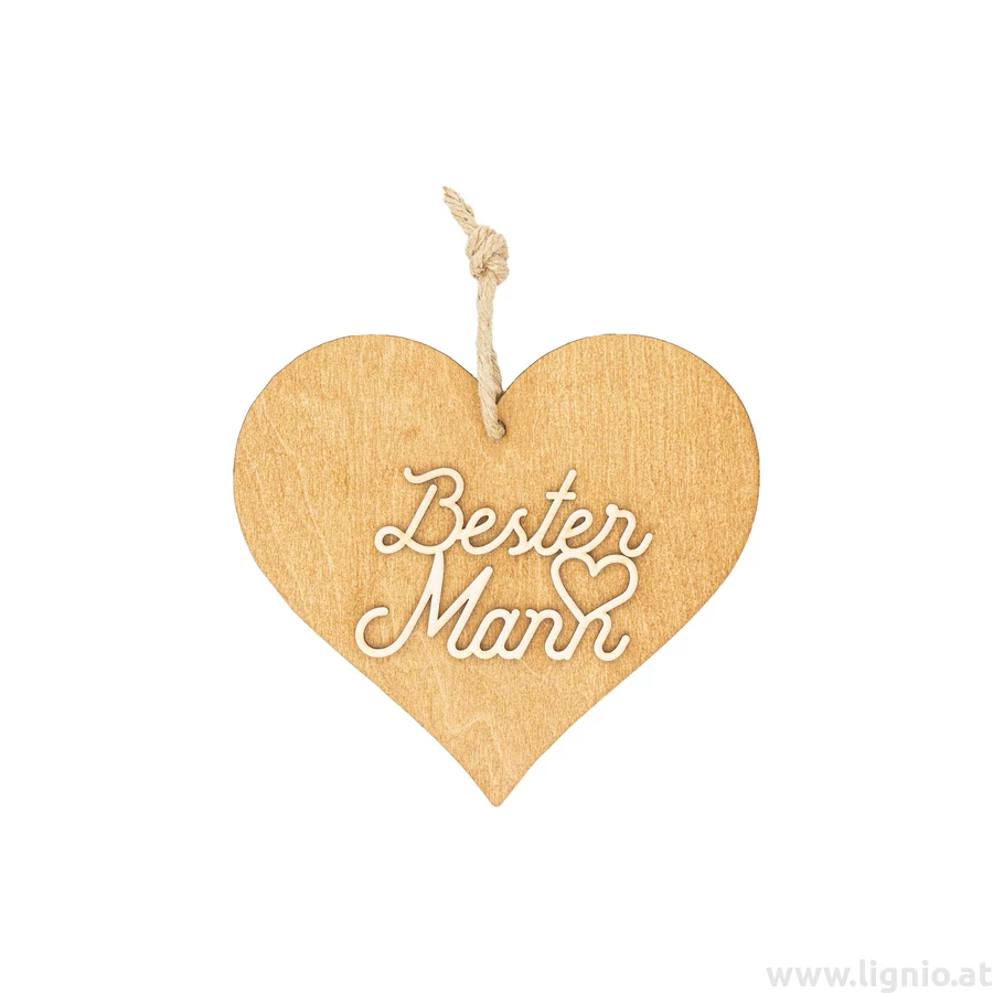 Braunes 3D Holzherz "Bester Mann"