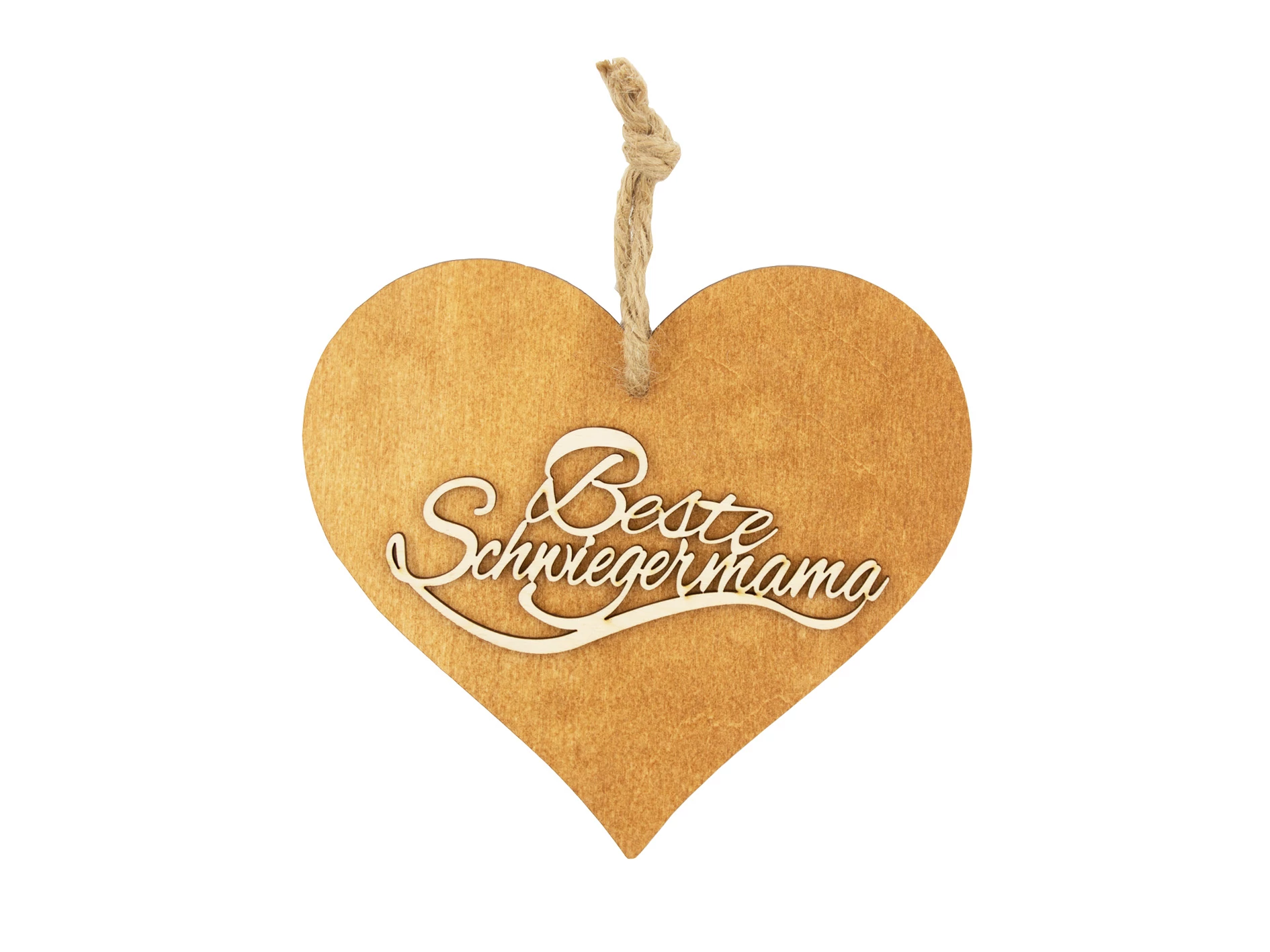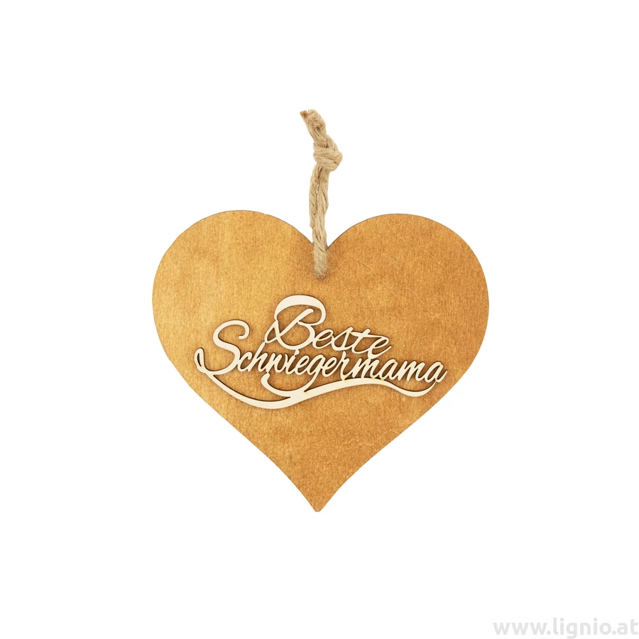 Braunes 3D Holzherz "Beste Swiegermama"