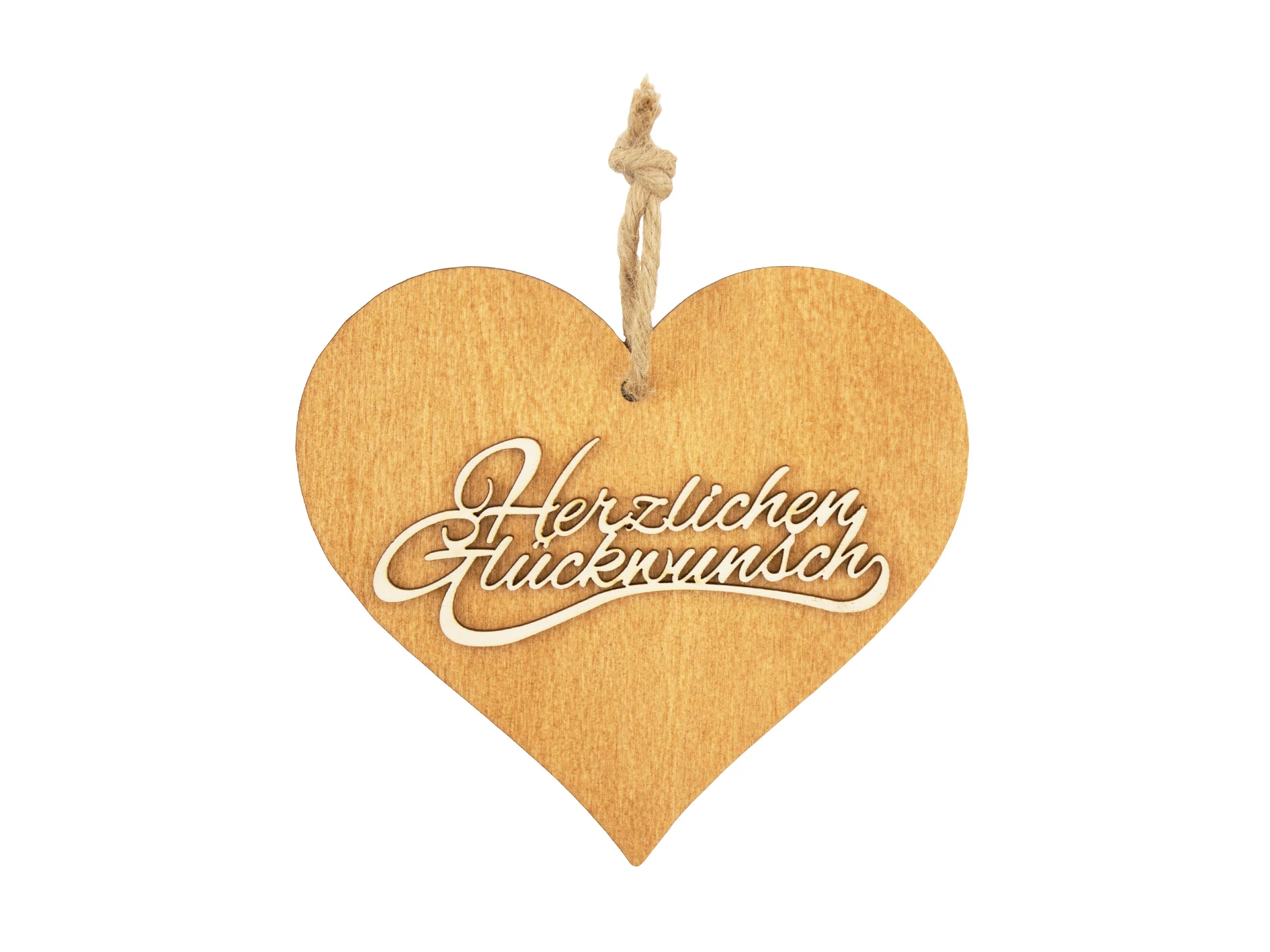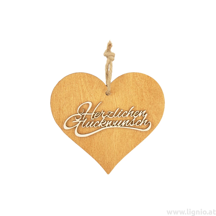 Braunes 3D Holzherz "Herzlichen Glückwunsch"