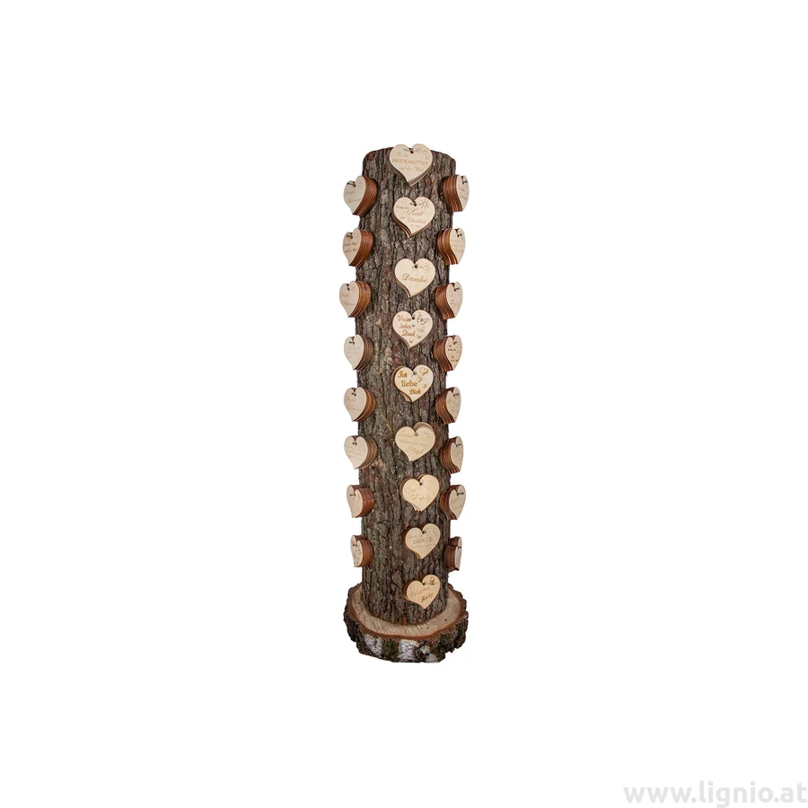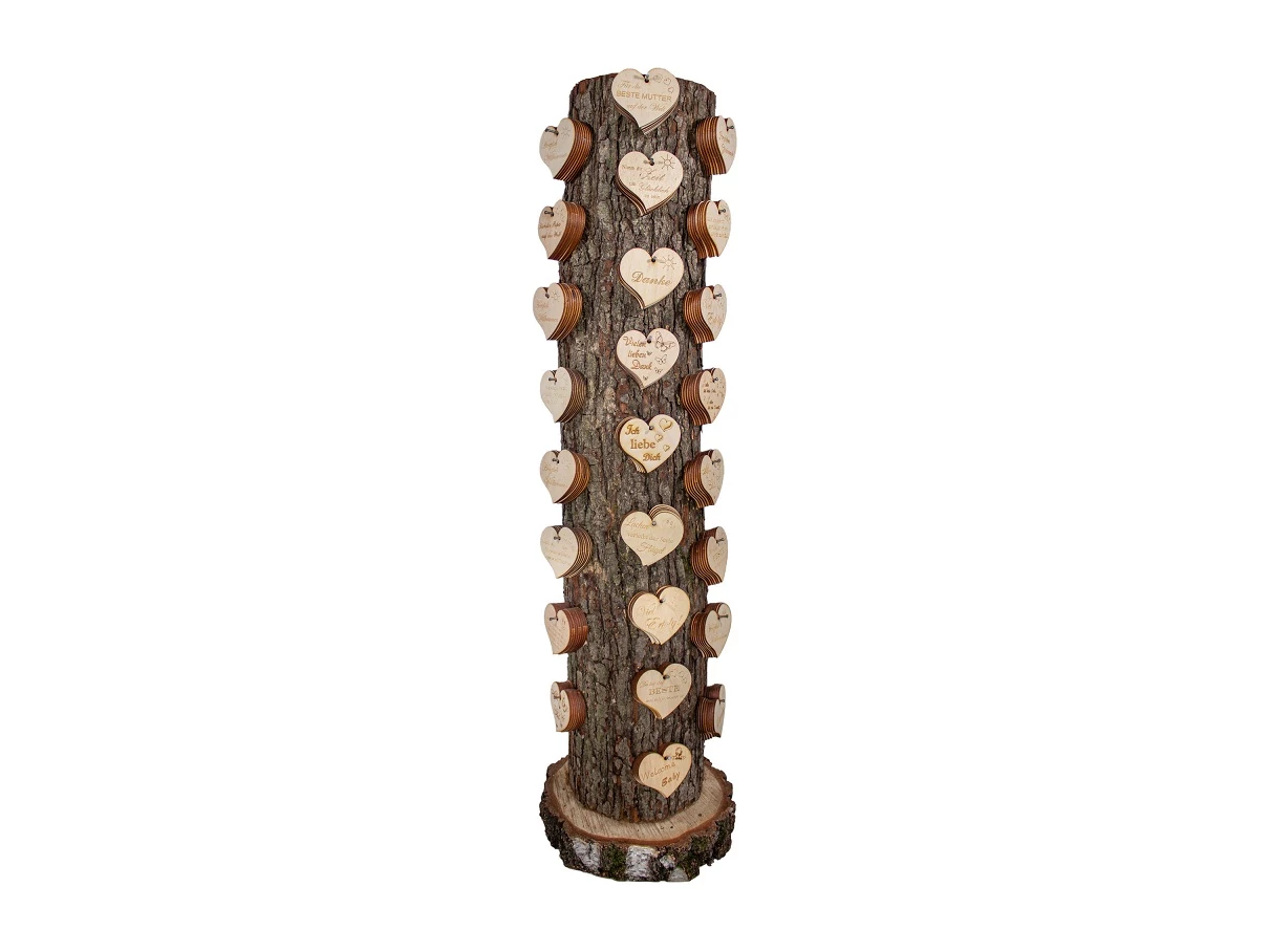 Display mit 200 Stück Natur Holzherz aus Birkenholz.