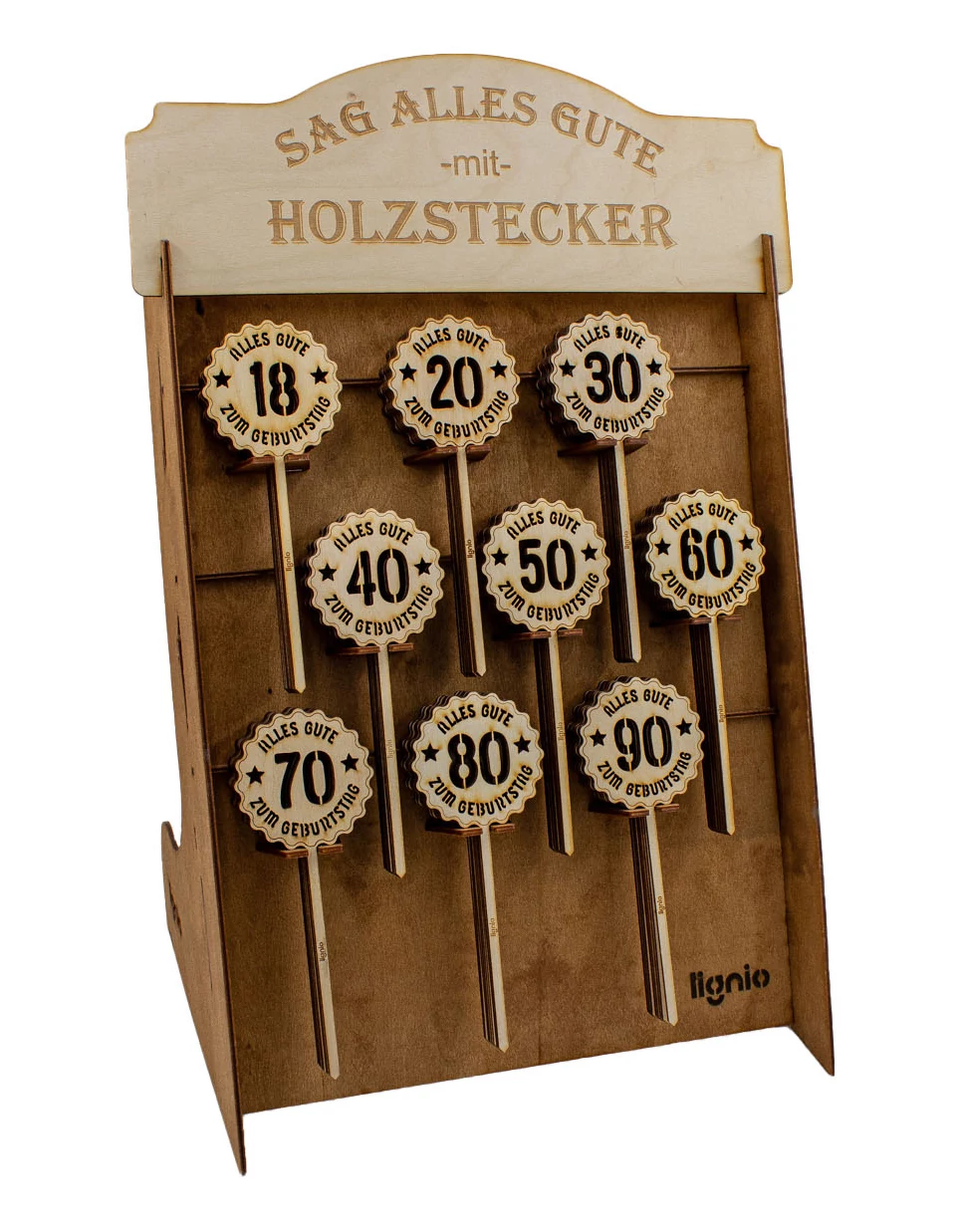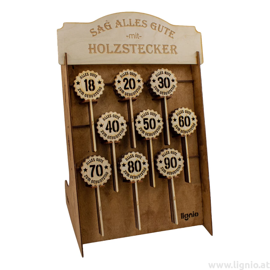 Display mit runden Geburtstagssteckern