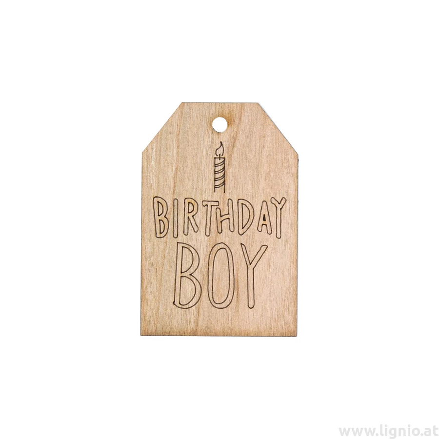 Grußkarte aus Kirschholz "Birthday boy"