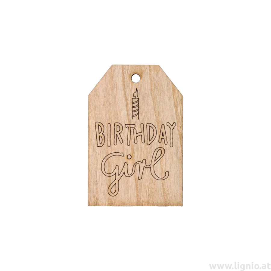 Grußkarte aus Kirschholz "Birthday girl"