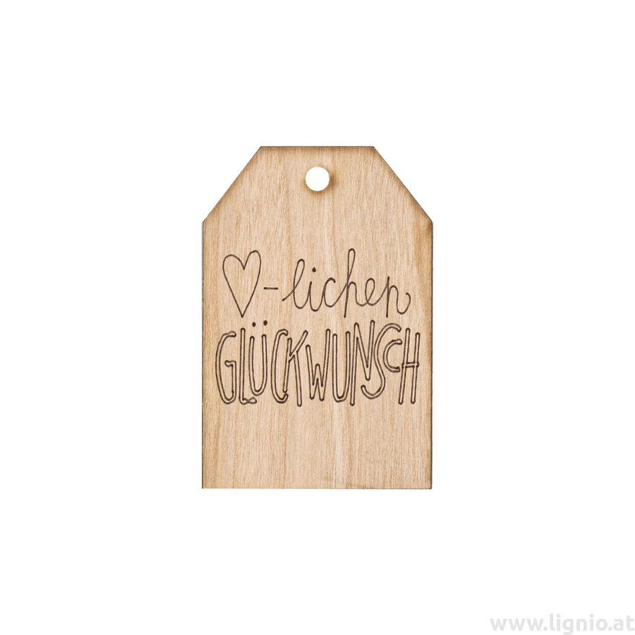 Grußkarte aus Kirschholz "Herzlichen Glückwunsch"