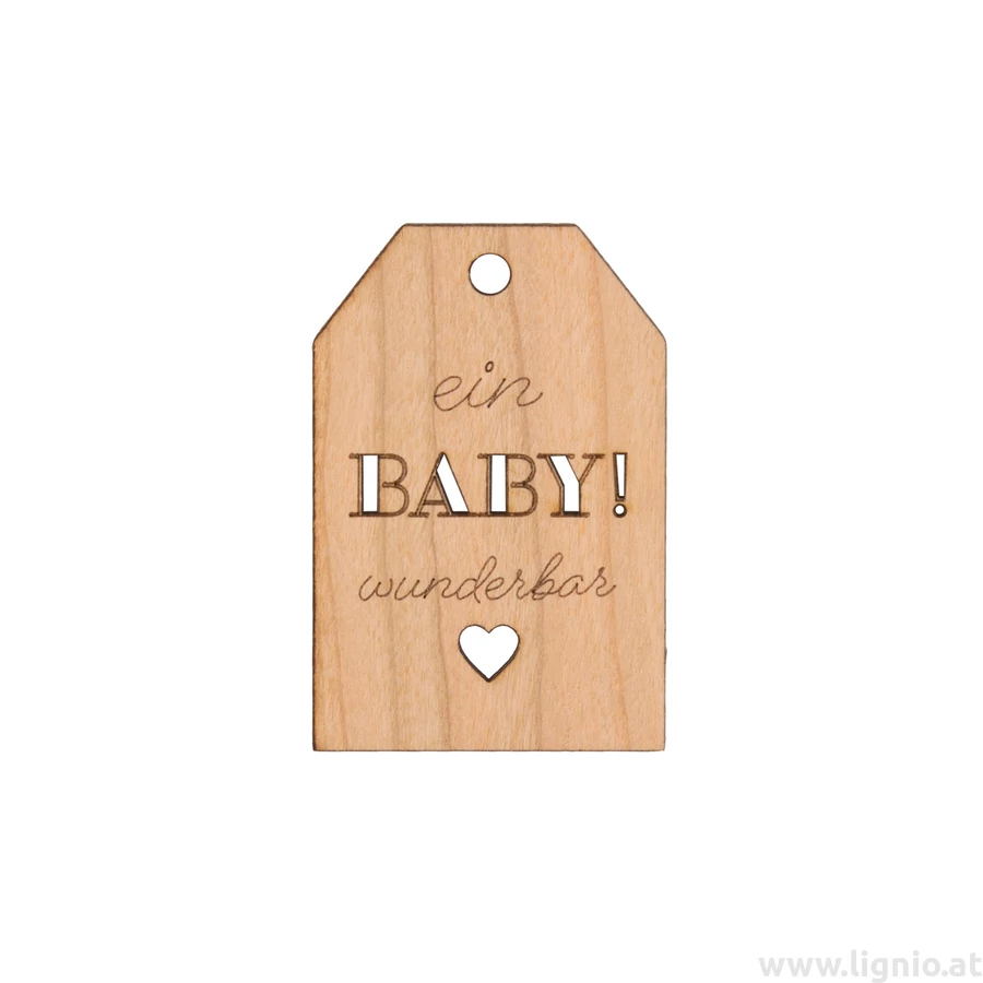 Grußkarte aus Kirschholz "Ein Baby! wunderbar (Herz)"