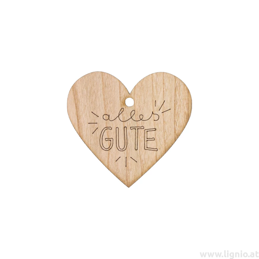 Herz aus Kirschholz mit Loch zum Aufhängen, Maße 6,8x7x0,3 cm, 10 Stk./Packung