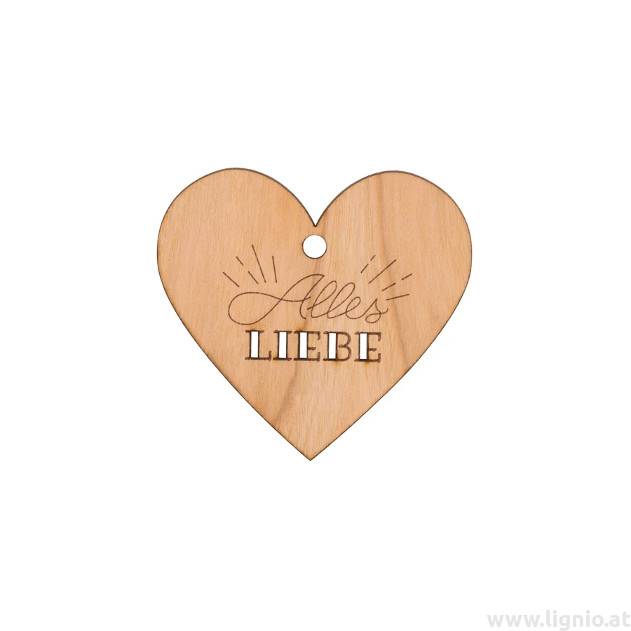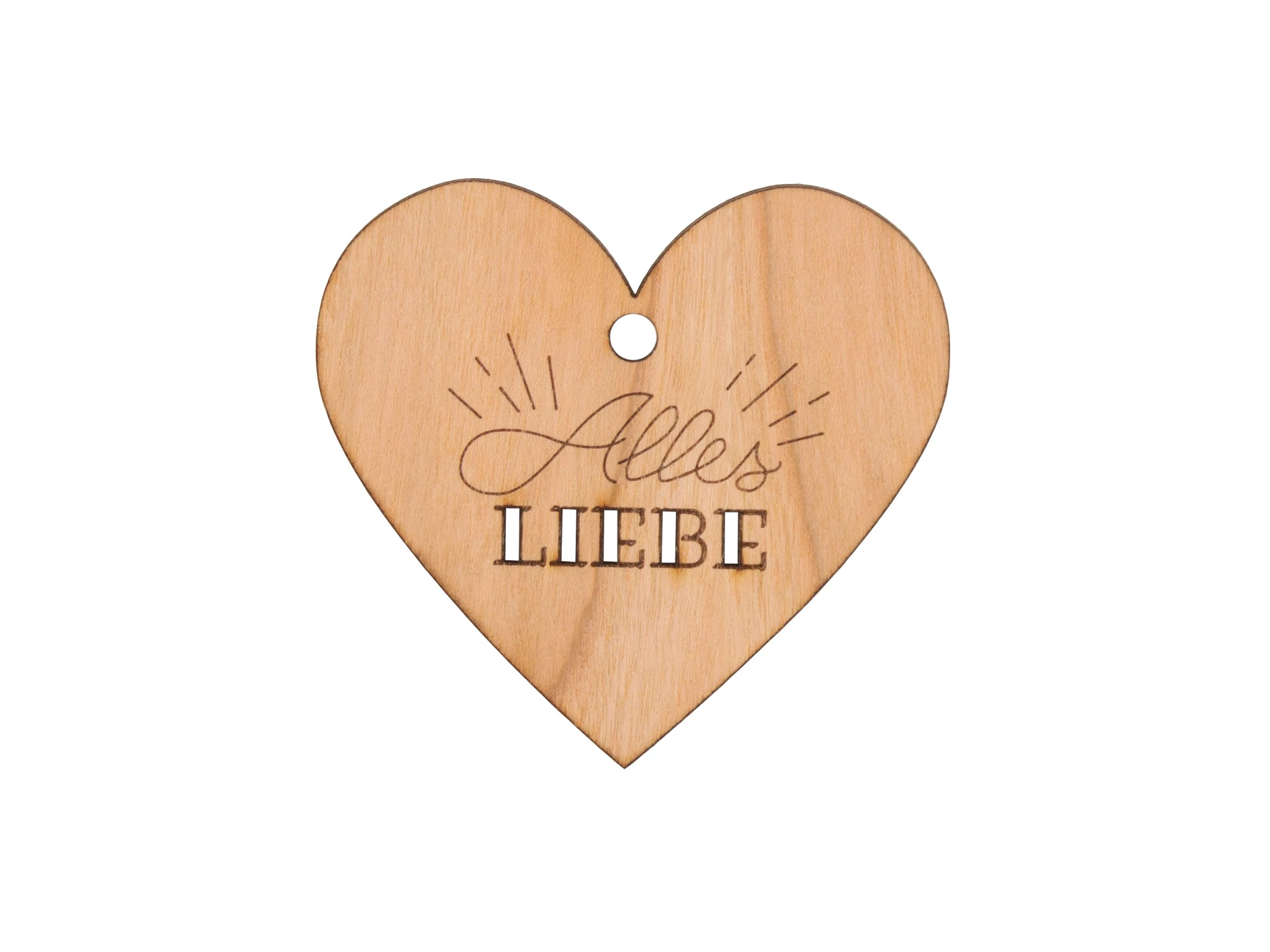 Herz aus Kirschholz mit Loch zum Aufhängen, Maße 6,8x7x0,3 cm, 10 Stk./Packung