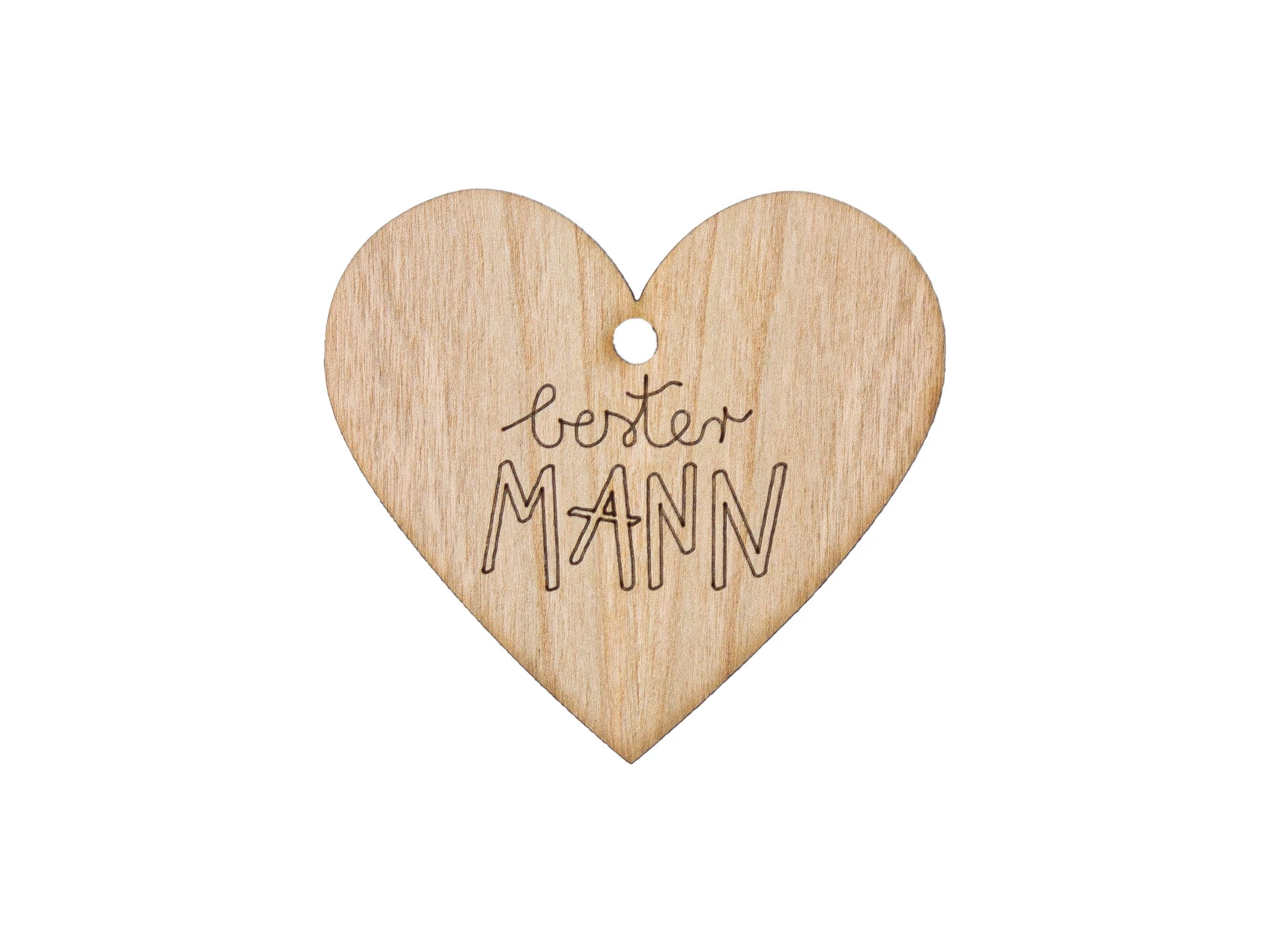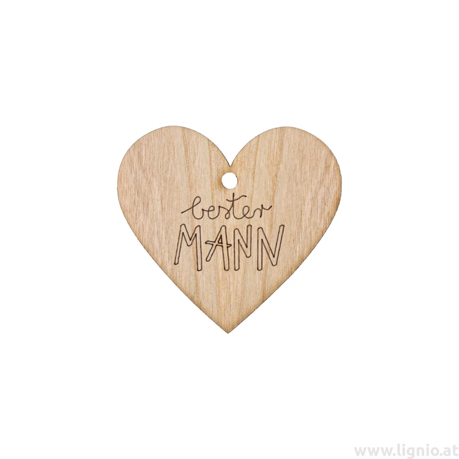 Herz aus Kirschholz mit Loch zum Aufhängen, Maße 6,8x7x0,3 cm, 10 Stk./Packung