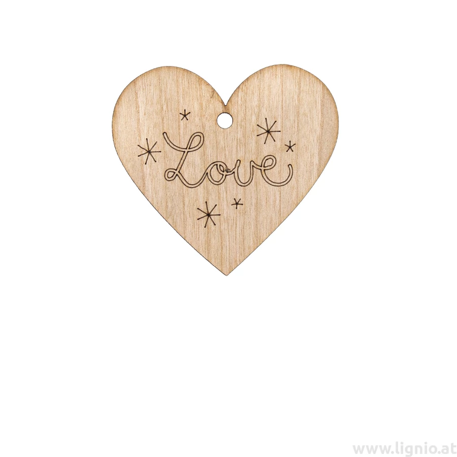 Herz aus Kirschholz mit Loch zum Aufhängen, Maße 6,8x7x0,3 cm, 10 Stk./Packung