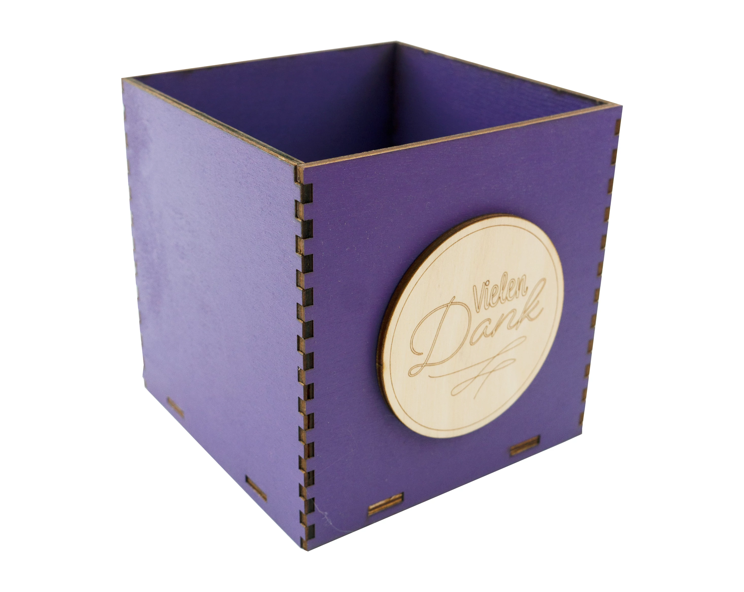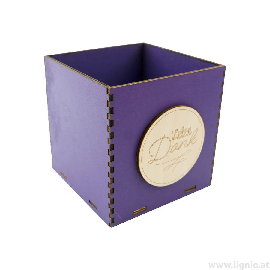 Holzbox 10 cm dunkellila "Vielen Dank"