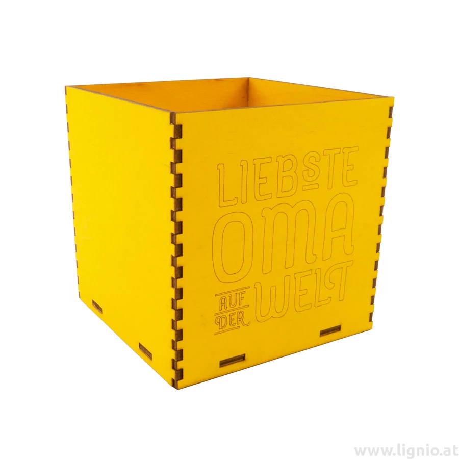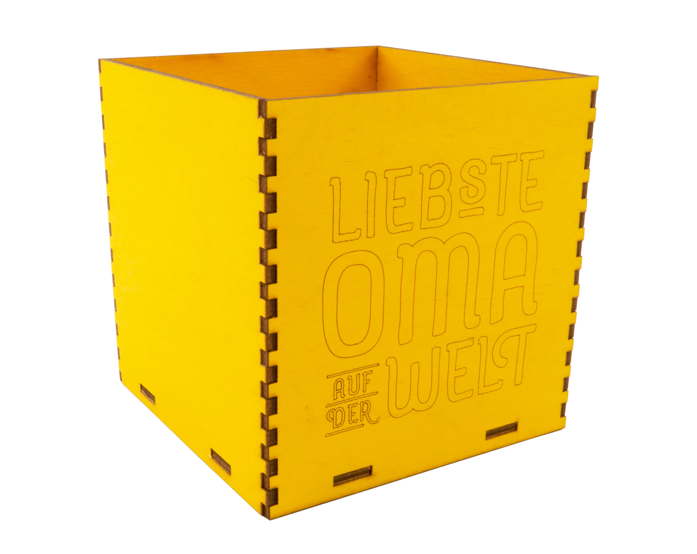 Holzbox 8 cm gelb "Liebste Oma auf der Welt"