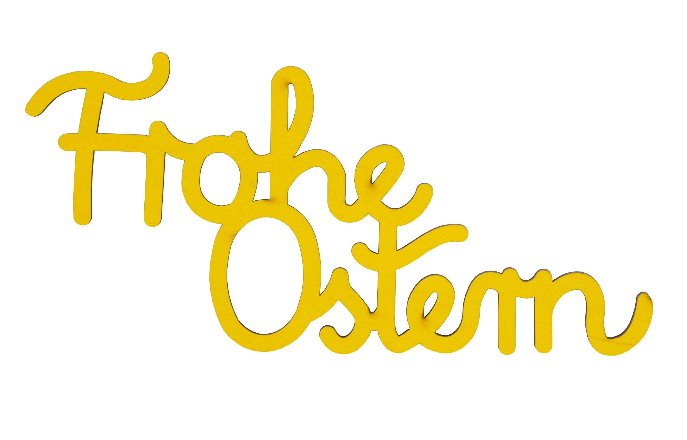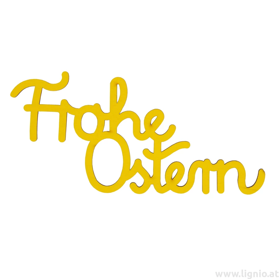 Holzschrift "Frohe Ostern" groß gelb