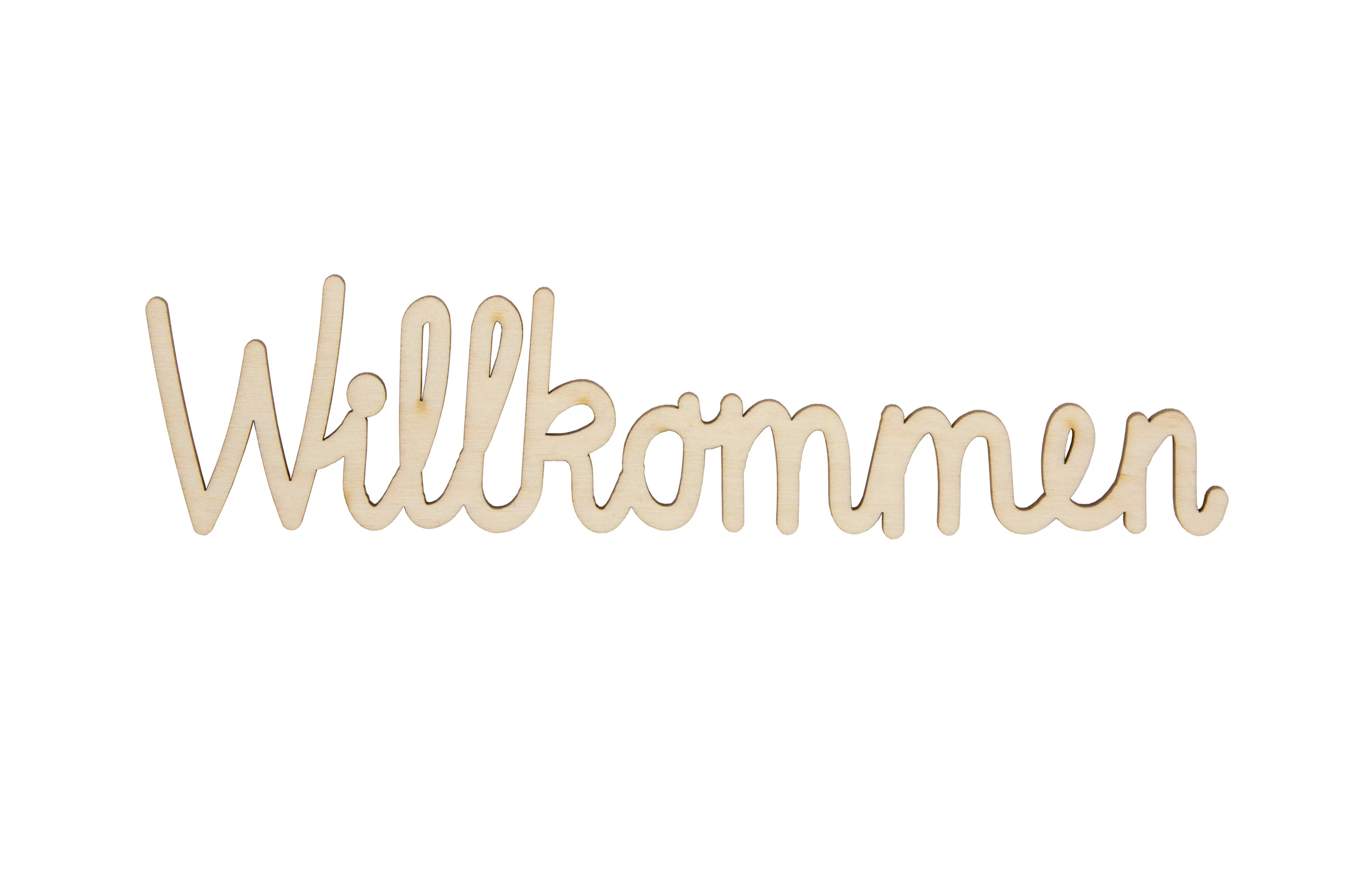 Holzschrift aus Birkenholz, Maße: 4x14x0,3cm, 9 Stk./Packung