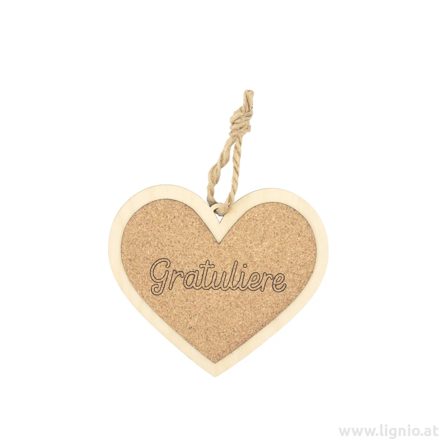 Kork Herz 12cm "Gratuliere"
