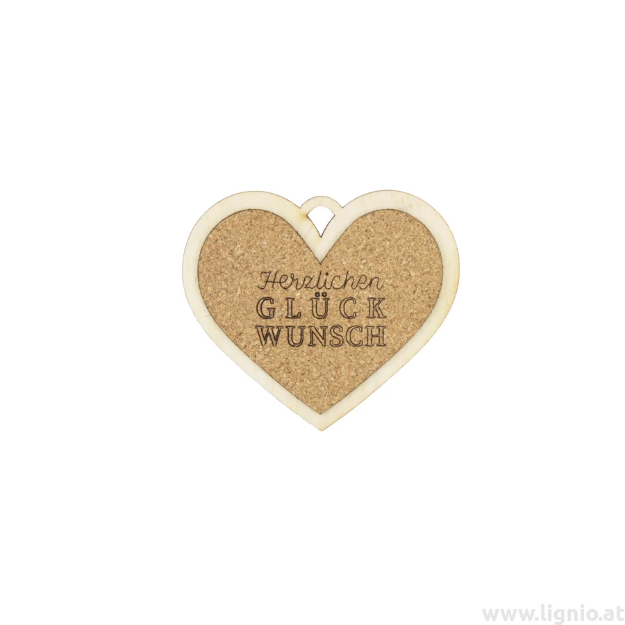 Kork Herz 8cm "Herzlichen Glückwunsch"