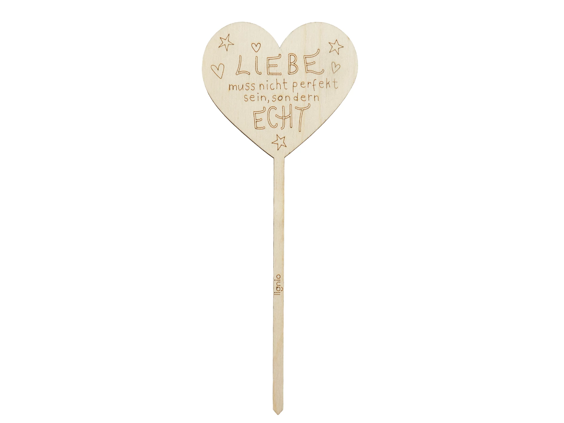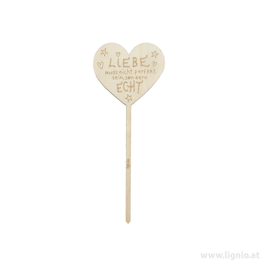 Holzstecker "Liebe muss nicht perfekt sein. Sondern ECHT."