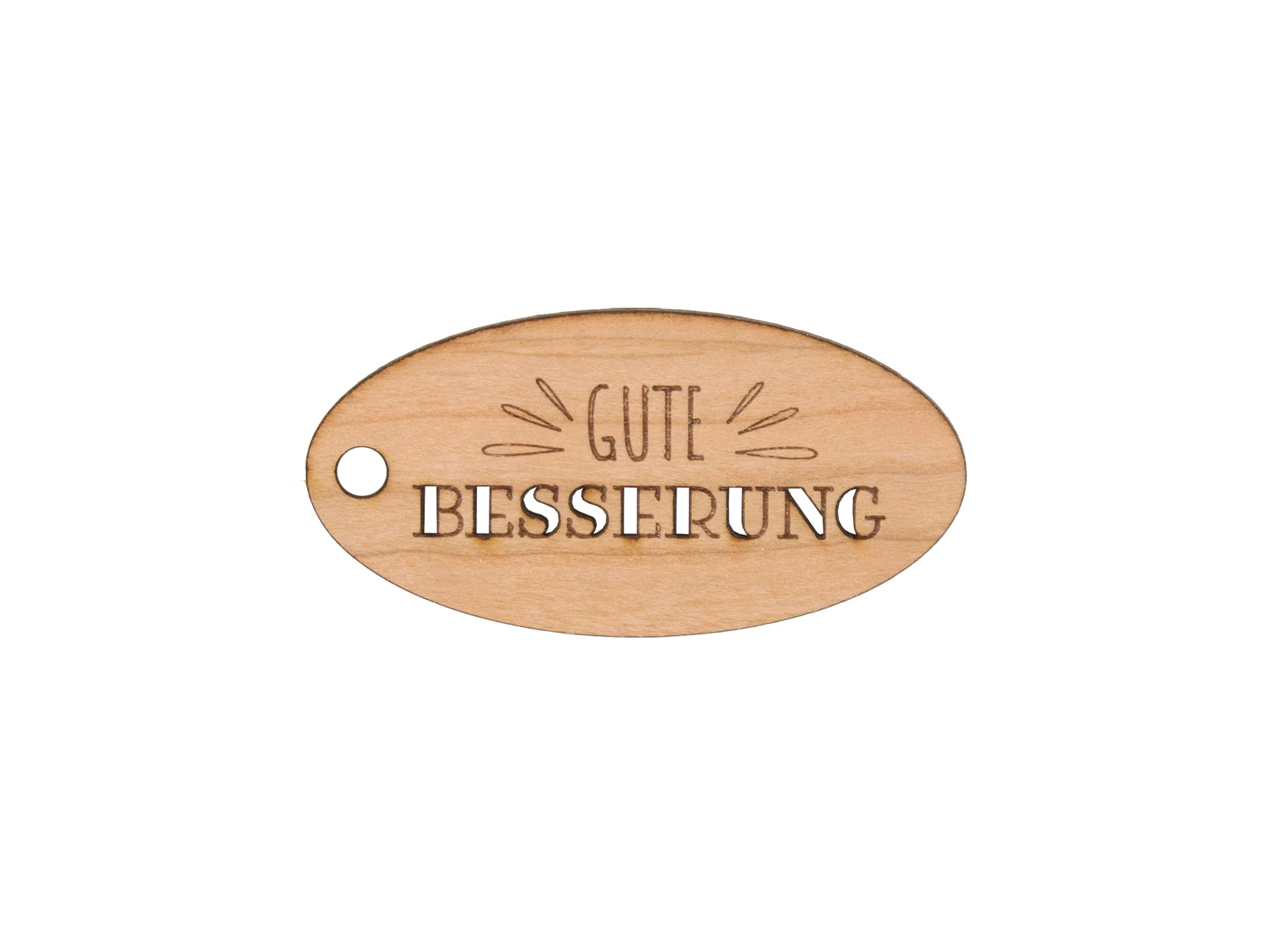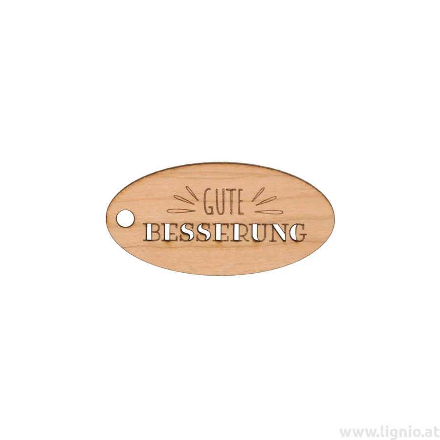 Oval Anhänger aus Kirschholz "Gute Besserung"