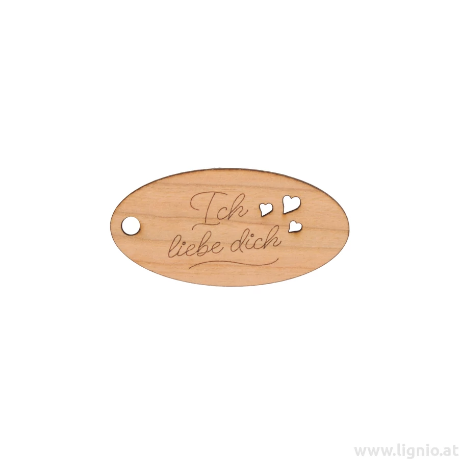 Oval Anhänger aus Kirschholz "Ich Liebe Dich"