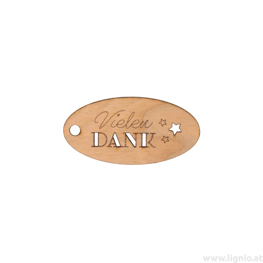 Oval Anhänger aus Kirschholz "Vielen Dank"