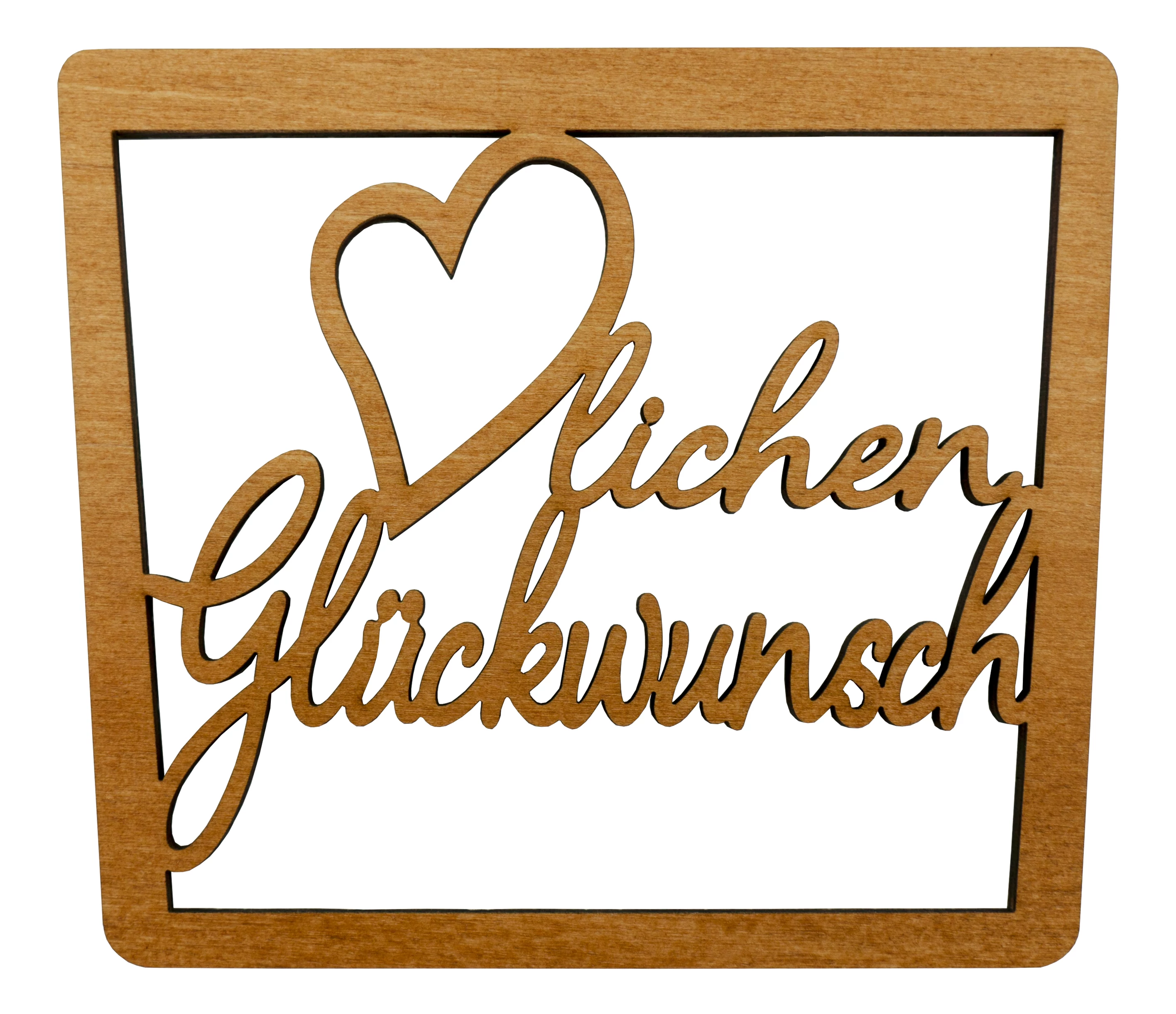 Spruchschild zur Holzbox aus Kirschholz. Maße: 10,5x12,5 cm