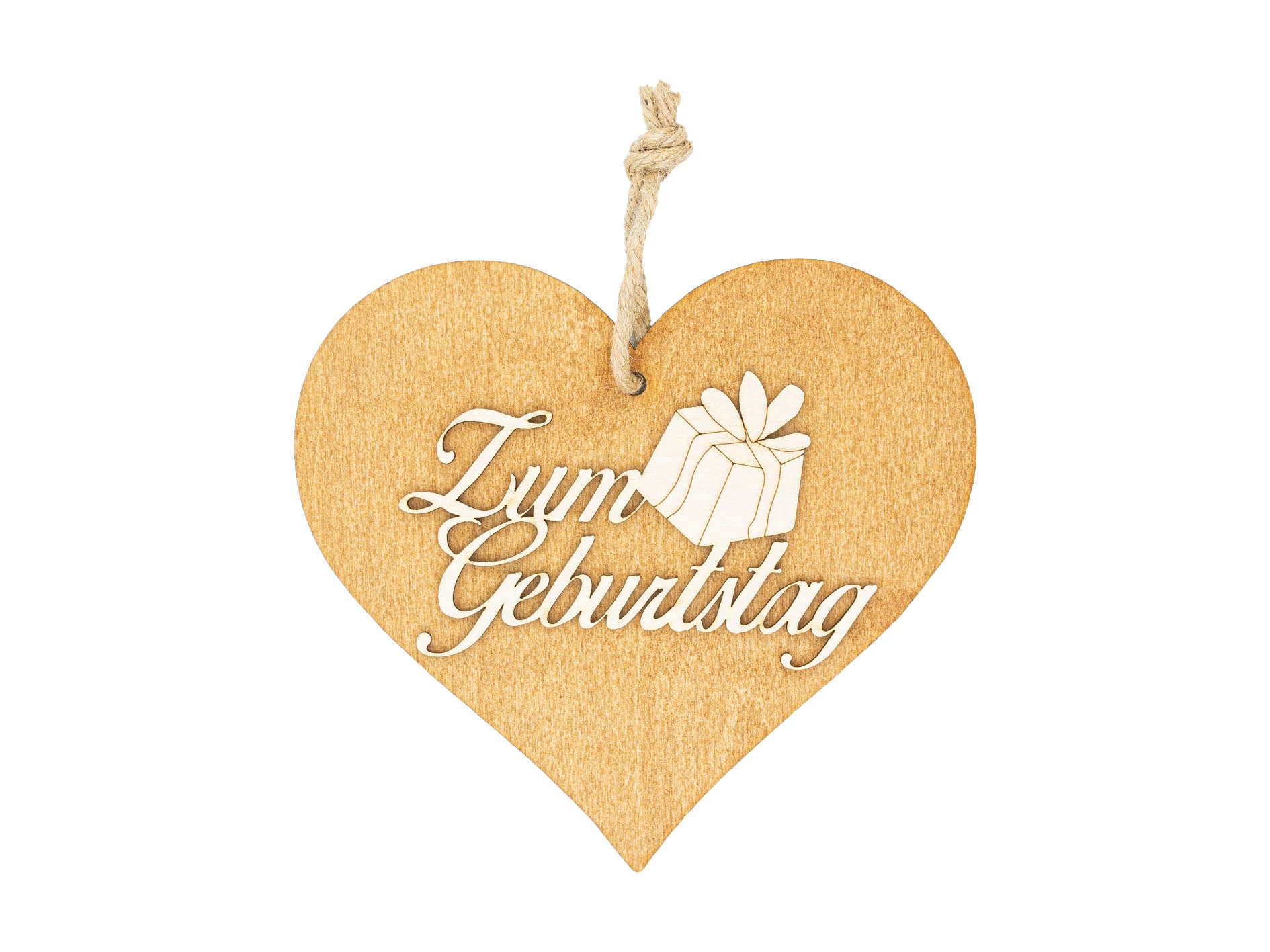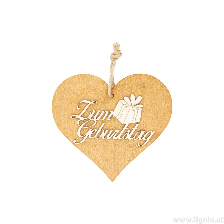 Braunes 3D Holzherz "Zum Geburtstag"
